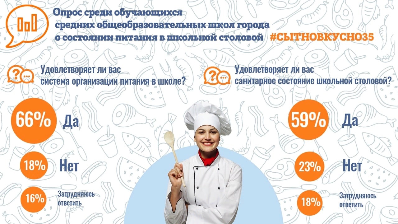 В рамках конкурса #ВкусноСытно35, дети устраивали проверки школьных столовых,снимали ролики с приготовлением новых блюд для меню и проводили опросы. Также в октябре этого года проводилось анкетирование по оценке школьного питания в 26 учебных организациях.