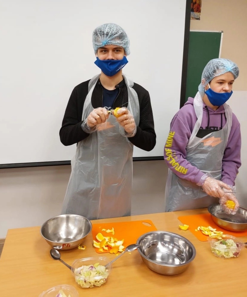 После встречи специалисты МАУ "Центра социального питания" провели очень интересный мастер-класс по приготовлению салата из курицы с апельсином.